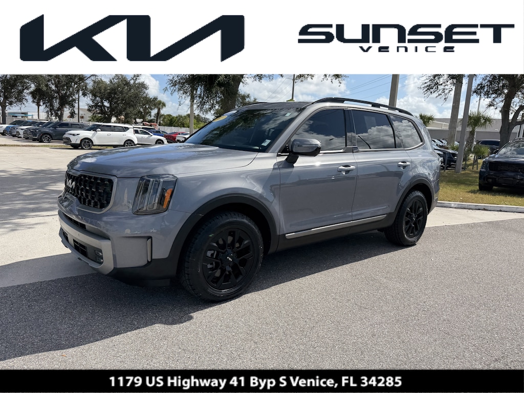 Certified. CARFAX One-Owner. Everlasting Silver 2023 Kia Telluride SX-Prestige X-Pro Recent Arrival! *KIA CERTIFIED*, * BOUGHT HERE SERVICED HERE*, *SOLD NEW BY US*, 4-Wheel Disc Brakes, ABS brakes, Apple CarPlay & Android Auto, Auto-leveling suspension, Automatic temperature control, Brake assist, Dual front impact airbags, Dual front side impact airbags, Electronic Stability Control, Exterior Parking Camera Rear, Four wheel independent suspension, Front dual zone A/C, Front fog lights, Fully automatic headlights, Heads-Up Display, Heated & Ventilated Front Bucket Seats, Heated rear seats, Memory seat, Navigation System, Panic alarm, Power driver seat, Power Liftgate, Power moonroof, Power passenger seat, Radio: AM/FM harman/kardon Audio System, Remote keyless entry, Security system, Smart Key w/ Push Button and Remote Start, Speed control, Speed-sensing steering, Steering wheel mounted audio controls, Traction control, Variably intermittent wipers, Ventilated rear seats, Wheels: 18" x 7.5" Black Finish X-PRO Exclusive.