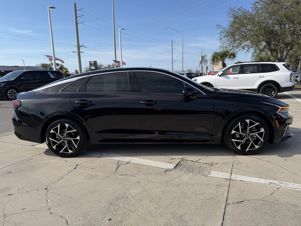 Certified. CARFAX One-Owner. Aurora Black Pearl 2025 Kia K5 EX Recent Arrival! 4-Wheel Disc Brakes, ABS brakes, AM/FM radio: SiriusXM, Auto High-beam Headlights, Automatic temperature control, Brake assist, Dual front impact airbags, Dual front side impact airbags, EC Mirror w/Homelink, Electronic Stability Control, Emergency communication system: Kia Connect (includes 1 year free trial), Four wheel independent suspension, Front dual zone A/C, Fully automatic headlights, Heated & Ventilated Front Bucket Seats, Memory seat, Navigation System, Panic alarm, Power driver seat, Power moonroof, Remote keyless entry, Security system, Speed control, Speed-sensing steering, Steering wheel mounted audio controls, Traction control, Wheels: 18" x 7.5J Gloss Black Machined Finish Alloy.